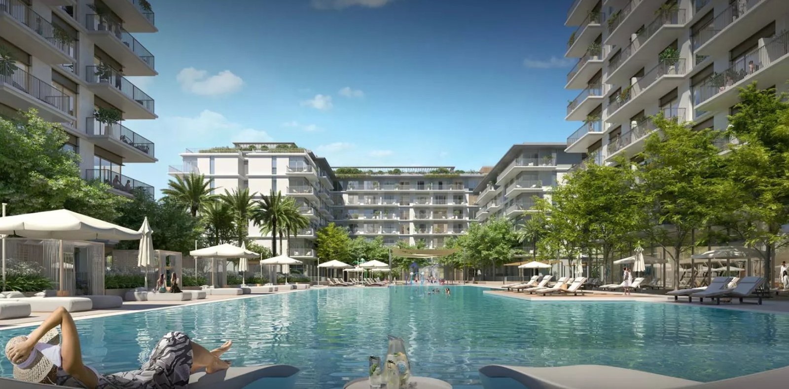 Four architecturally cohesive mid-rise towers of 6 to 18 storeys. 391 residences spanning 1-, 2-, and 3-bedroom apartments and 3-bedroom townhouses. Dubai’s longest swimmable canal pool, stretching an uninterrupted 500 metres. A 430-berth world-class marina at the foot of the community. A Riviera-inspired boulevard of waterfront dining, boutique retail, and landscaped promenades. Views of the Arabian Gulf, the marina, and the iconic Dubai skyline that are simply not available anywhere else in the city. Residents also enjoy views of the Queen Elizabeth 2, a historic maritime landmark and floating hotel, known as Elizabeth, which stands as a symbol of the area’s rich maritime heritage and luxury lifestyle.